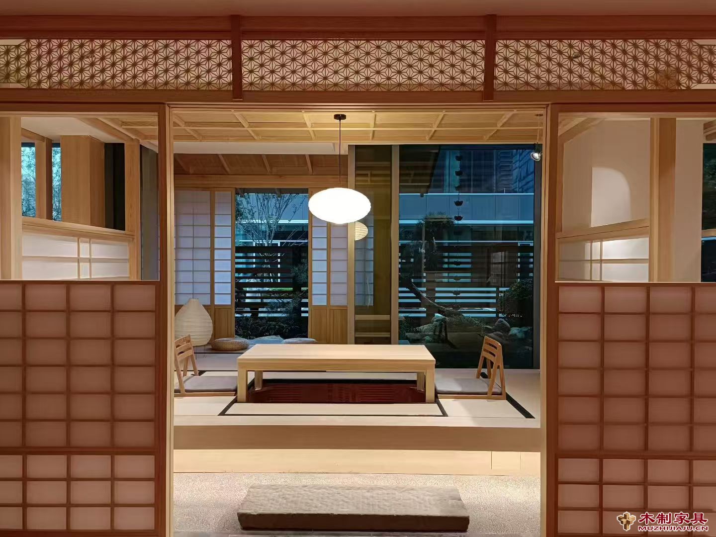 3. 美学融合:日式禅风与现代简约风格碰撞,“框景入画”设计搭配实木格栅光影效果,营造静谧雅致且不失灵动的东方意境。